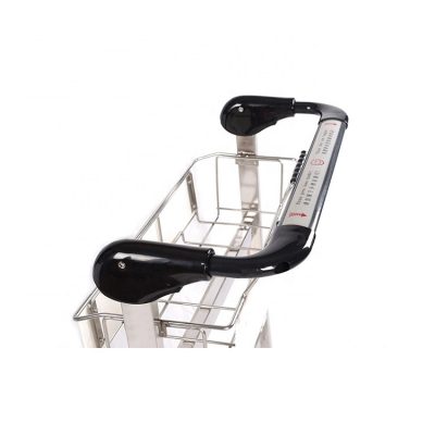The airport trolley is specially used for the transfer of large luggage. It is a metal shelf supported by three wheels. Unlike supermarket trolleys, the front separate guide wheels are equipped with a brake device; when pushing the airport trolley, it is required Unlock the front brake device. Before unlocking, the trolley cannot move forward or backward. The unlocking method is to press down the black push handle with both hands;